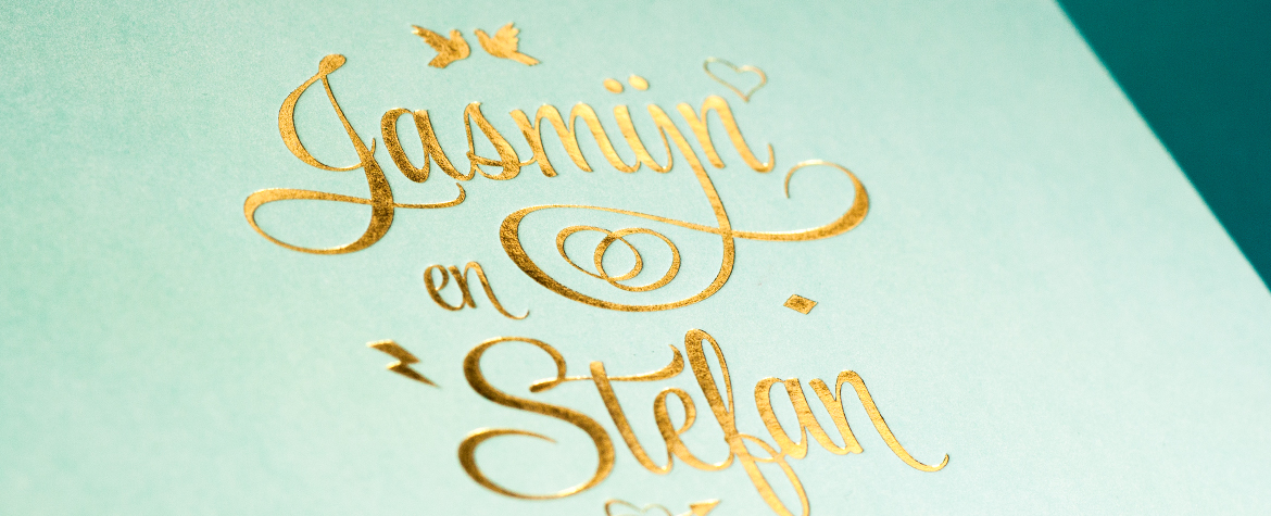Foliedruk is misschien wel de meest luxe afwerking die we maken, het geeft de kaart enorm veel cachet. Folies zijn verkrijgbaar in diverse kleurpigmenten en in metallic kleuren zoals goud, koper en zilver.