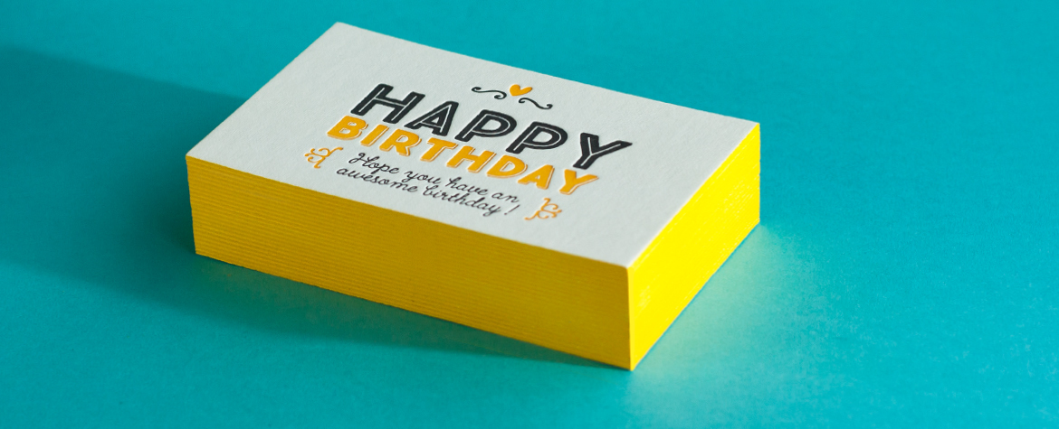 Kleur op snede maken is een veredelingstechniek, andere benamingen voor deze techniek zijn bijvoorbeeld ’snede vergulden’ of ’edge coloring’. We voorzien bij het maken van een kleur op snede de zijkanten (de snede) van je kaarten van een kleur. Deze luxe afwerking geeft je kaarten écht iets extra’s! Tip: Kies een afwijkende kleur voor de snede, zo vergroot je het kleurpallet.