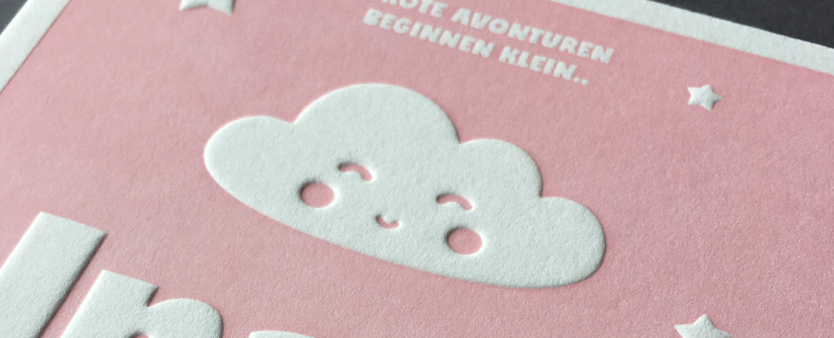 Zo werkt het ook met letterpress, de tak is de tekst en de subtielere vormen in je ontwerp, de plank is het volvlak.